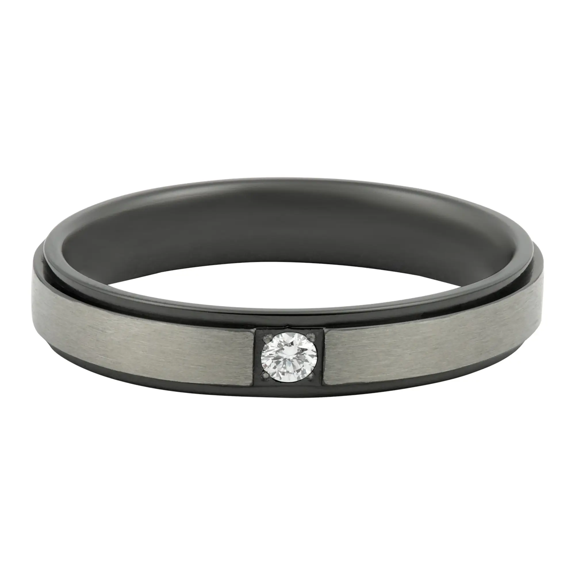 This Men’s diamond ring crafted from grey and black zirconium, 4.5 mm wide, is more than just an accessory: it is a statement of power, style, and distinction. Its 0.06 ct white brilliant-cut diamond catches the light with every movement, creating an effect that draws attention and evokes instant admiration. Every line and detail is designed for the man who demands presence, confidence, and sophisticated style in everything he wears.
