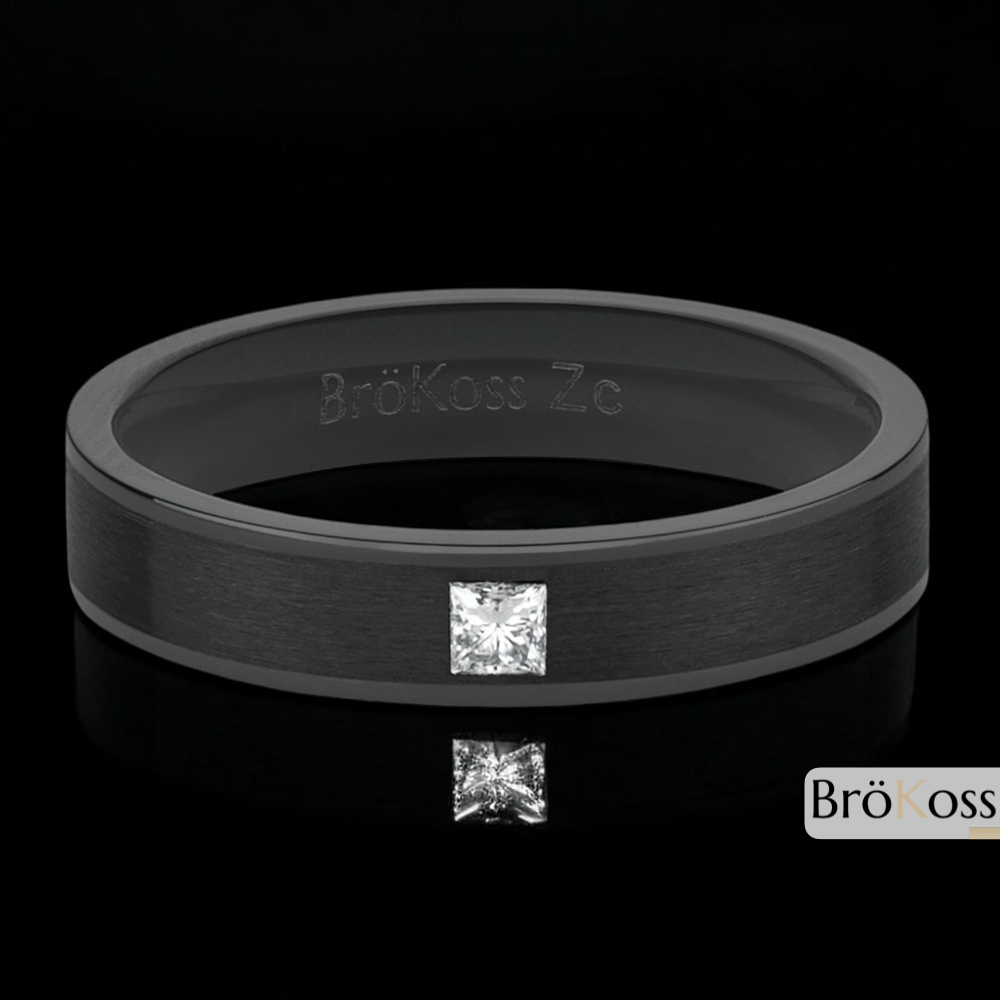 Esta alianza de hombre, con estilo de oro negro, en zirconio combina fuerza, modernidad y estilo.