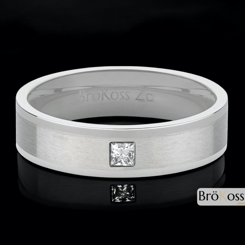 Alianzas de boda hombre – Zirconio gris con diamante cuadrado o lisa, 5,5 mm